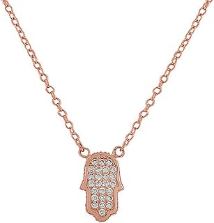 Damen Halskette mit Anhänger Sterling-Silber 925 rosegoldfarbenes Auge Hamsa Weiß Zirkonia