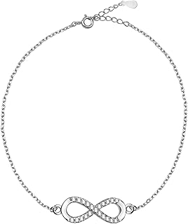 Fußkettchen Damen Unendlichkeitszeichen 925 Sterling Echt Silber Schmuck für Frauen Mädchen,Herz Zirkonia Fußkette Fußband Infinity Unendlichkeit Unendlich Liebe Armband Geschenk für Urlaub Geburtstag