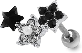 Multi Crystal Stein und Perle Stern mit Blume 16 Gauge 316L chirurgischer Stahl Tragus Knorpel Helix Piercing