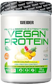 WEIDER Vegan Protein Piña-Colada, veganes Proteinpulver mit Erbsen- und Reisprotein, Eiweißpulver mit Obst- & Gemüseextrakten, ohne künstliche Süßstoffe & Zuckerzusatz, glutenfrei, 750g (25 Portionen)