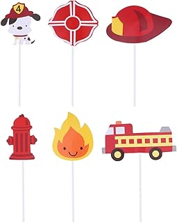 Amosfun 30 Stück Pappe Cake Topper Feuerwehrmann Feuerwehrauto Cupcake Picks dekorative Vorspeise Picks für Babyparty Geburtstag