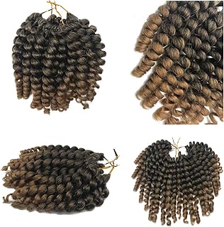 Coolbers 6 Packungen 8-Zoll-Jumpy Wand Curls Crochet Hair Synthetic Crochet Braids Haarverlängerungen Ombre Brown Jamaican Bounce Curl Crochet Hair (6 Packungen, 1B / 27)