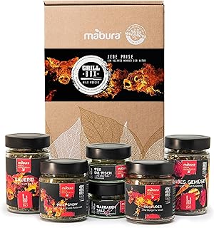 Mabura® 6er Grillgewürze Geschenkset Männer - Bio Gewürze Set als Zubehör zum Grillen | BBQ Gewürze als Geschenk für Sie und Ihn - Feinkost Gewürzmischung für den Grill inkl. Grußkarte