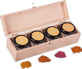 Rimoco Curry Geschenkset - N°303 Bio Indisches Curry 65g | N°304 Bio Rotes Thai Curry 60g | N°307 Bio Purple Curry 70g | N°308 Bio Dragon Curry 60g | in edler Holz Geschenkbox